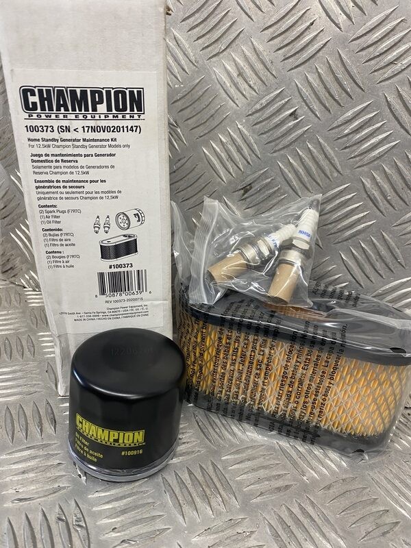 Home Standby Maintaince Kit for 12.5kW Champion Standby Generator Models. This kit is for seriel numbers 17N0V0201147 and greater.